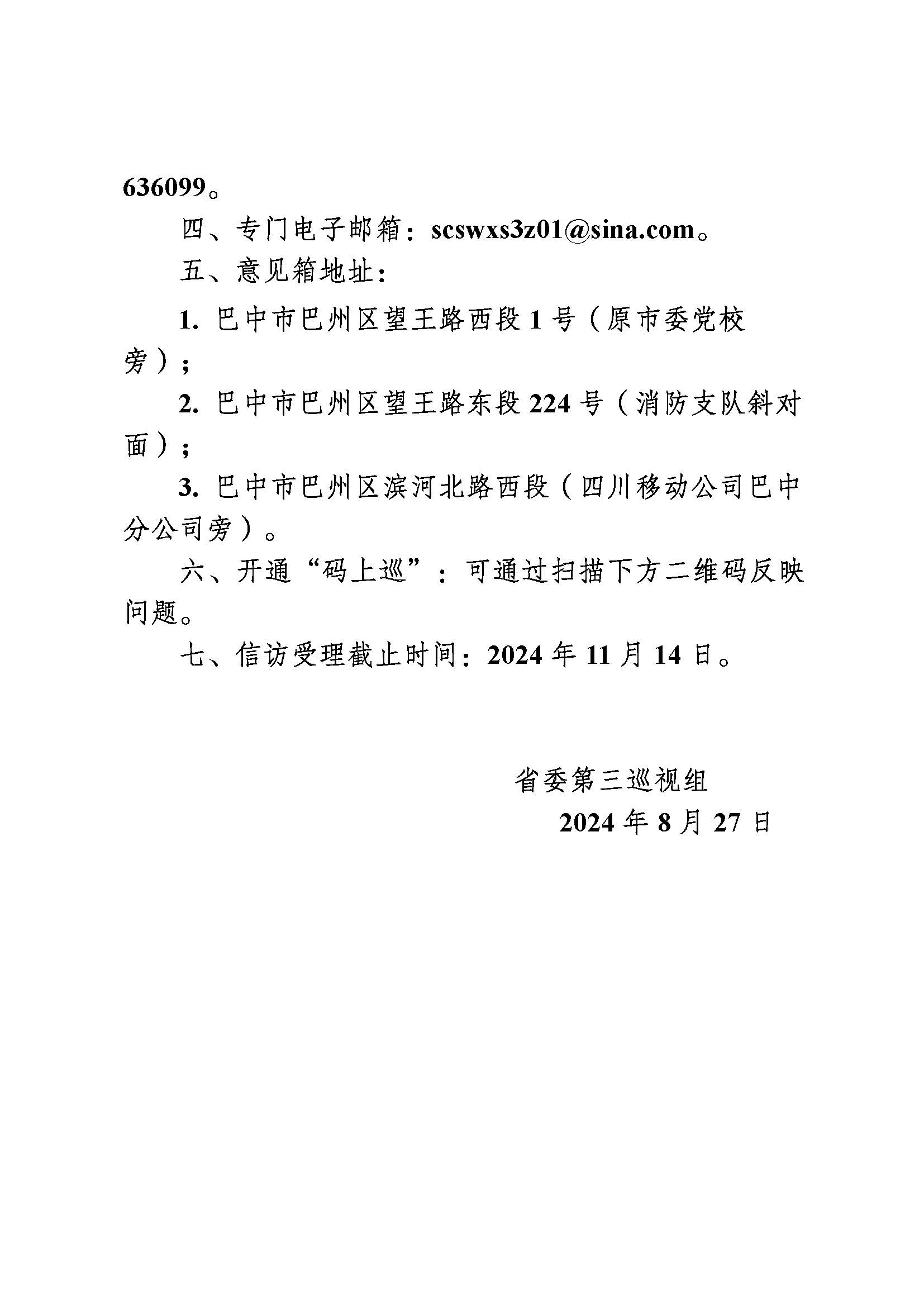 中共四川省委第三巡視組巡視巴中市公告
