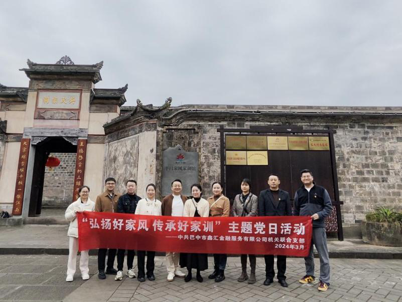 家風(fēng)正則黨風(fēng)清,家風(fēng)正則作風(fēng)優(yōu)。為進(jìn)一步弘揚(yáng)中華民族傳統(tǒng)美德,傳承良好家風(fēng)家訓(xùn),3月20日下午,中共巴中市鑫匯金融服務(wù)有限公司機(jī)關(guān)聯(lián)合支部前往平昌縣白衣古鎮(zhèn)開展“弘揚(yáng)好家風(fēng)·傳承好家訓(xùn)”主題黨日活動,機(jī)關(guān)聯(lián)合支部全體黨員參加。